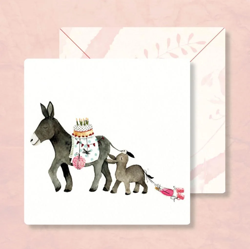 Feestvreugde in de vorm van een kaart! De Zintenz kaart ‘Ezeltjes Vieren Feest’ laat vrolijke ezeltjes zien die er samen een feestje van maken. Perfect om iemand te feliciteren, op te vrolijken of zomaar een glimlach te bezorgen. Met een speelse illustratie en duurzame productie is dit kaartje een bewuste én feestelijke keuze. Gedrukt op gerecycled landbouwafvalpapier en met milieuvriendelijke inkt.