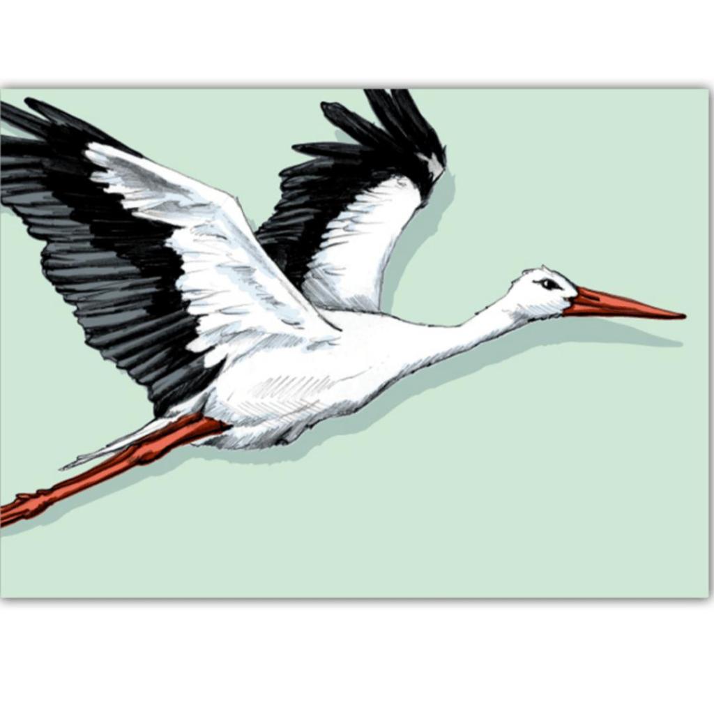 Ansichtkaart Ooievaar Bata – Vogelillustratie (illi)