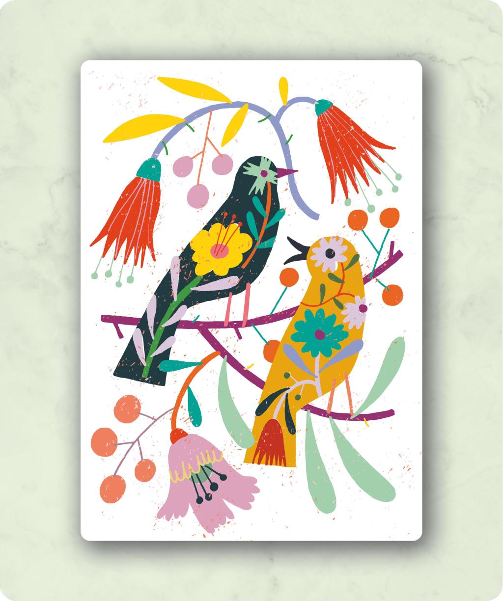 - Vrolijk design met vogels en bloemen