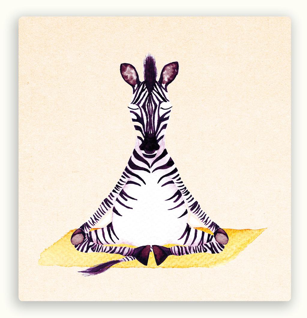 ZintenZ vierkante postkaart – Mediterende zebra op yogamat