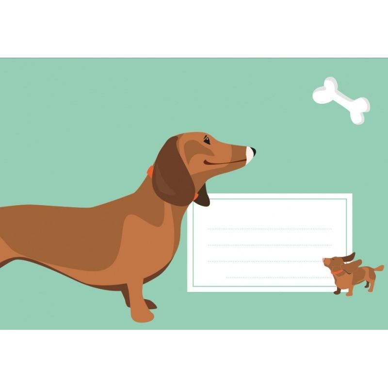 Deze envelop met tekkel-illustratie heeft een lieve en speelse uitstraling. De grote tekkel samen met het kleine hondje en het botje zorgen voor een vrolijk beeld dat direct in het oog springt. De zachte groene achtergrond geeft de envelop een rustige, frisse uitstraling. Perfect voor hondenliefhebbers en leuk om te combineren met een kaart, maar ook geschikt voor een briefje, uitnodiging of cadeaubon. Een envelop die meteen een glimlach oproept bij de ontvanger.