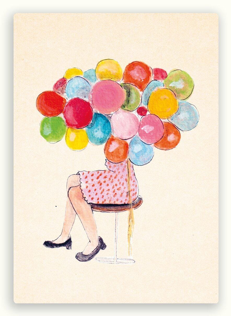Een sierlijke dame met een bos ballonnen – deze Zintenz postkaart – Ballonnen Dame straalt feestelijkheid en elegantie uit. Perfect voor een verjaardag, felicitatie of gewoon om iemand blij te maken met een luchtig en stijlvol gebaar.