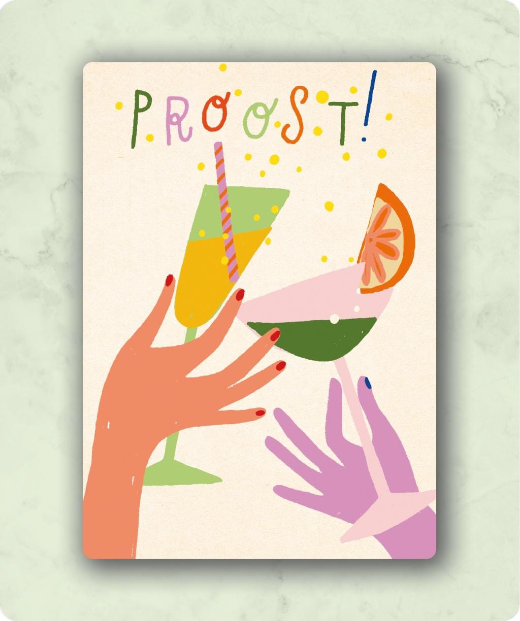 Tijd om te vieren! De Zintenz kaart ‘Proost’ is perfect voor een verjaardag, jubileum, geslaagd-feestje of gewoon een spontaan geluksmoment. Met z’n heldere boodschap en frisse uitstraling is deze kaart altijd een goed idee. Natuurlijk gedrukt op gerecycled landbouwafvalpapier en met milieuvriendelijke inkt – een feestelijk gebaar met een duurzame insteek.