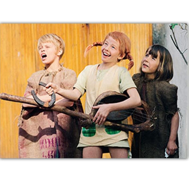 Fotokaart Pippi, Tommy En Annika Spelen Muziek
