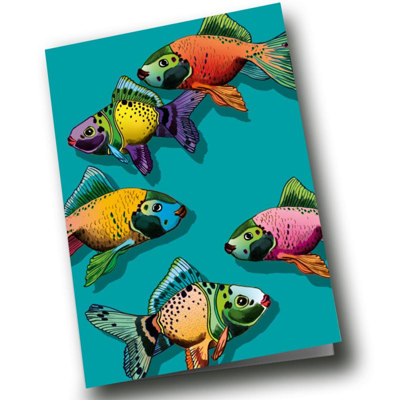 Dubbele wenskaart Tutumo – Kleurrijke vissen illustratie van Illi