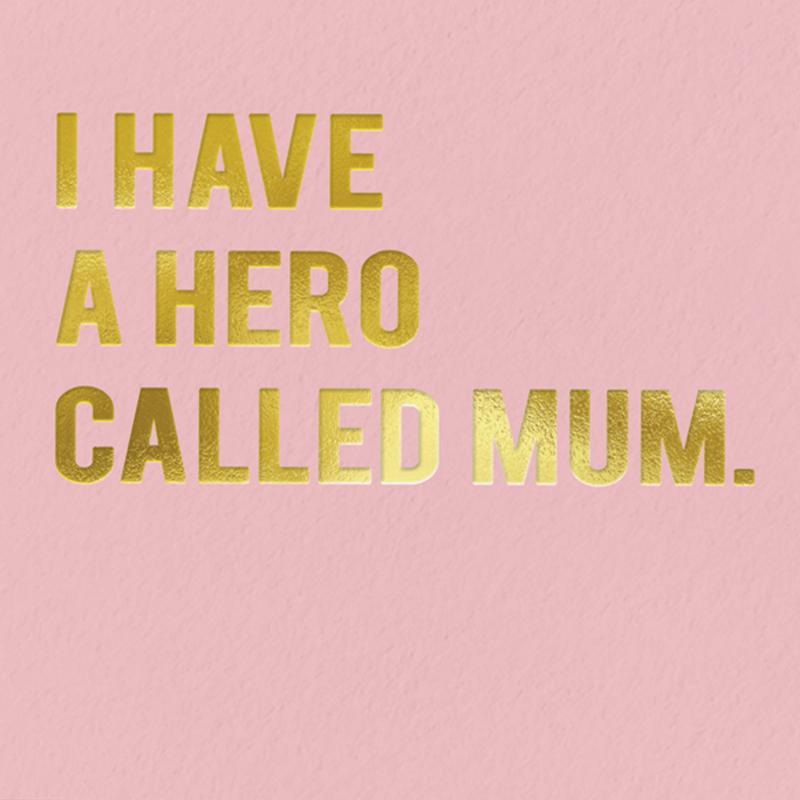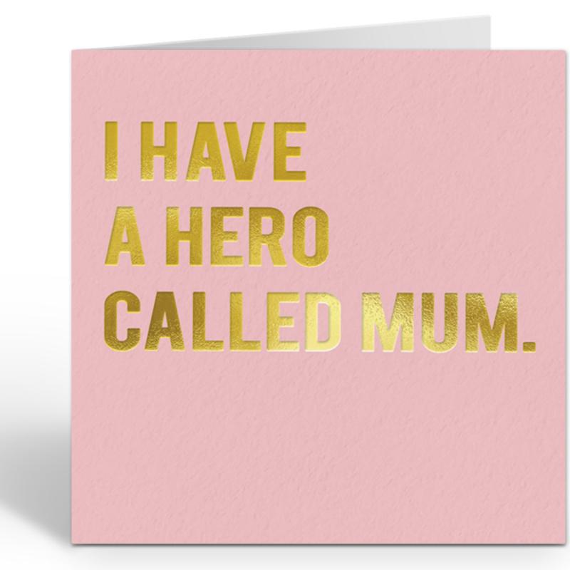 Kaart I Have a Hero Called Mum – Roze kaart met gouden folie van Redback Cards (16 x 16 cm)