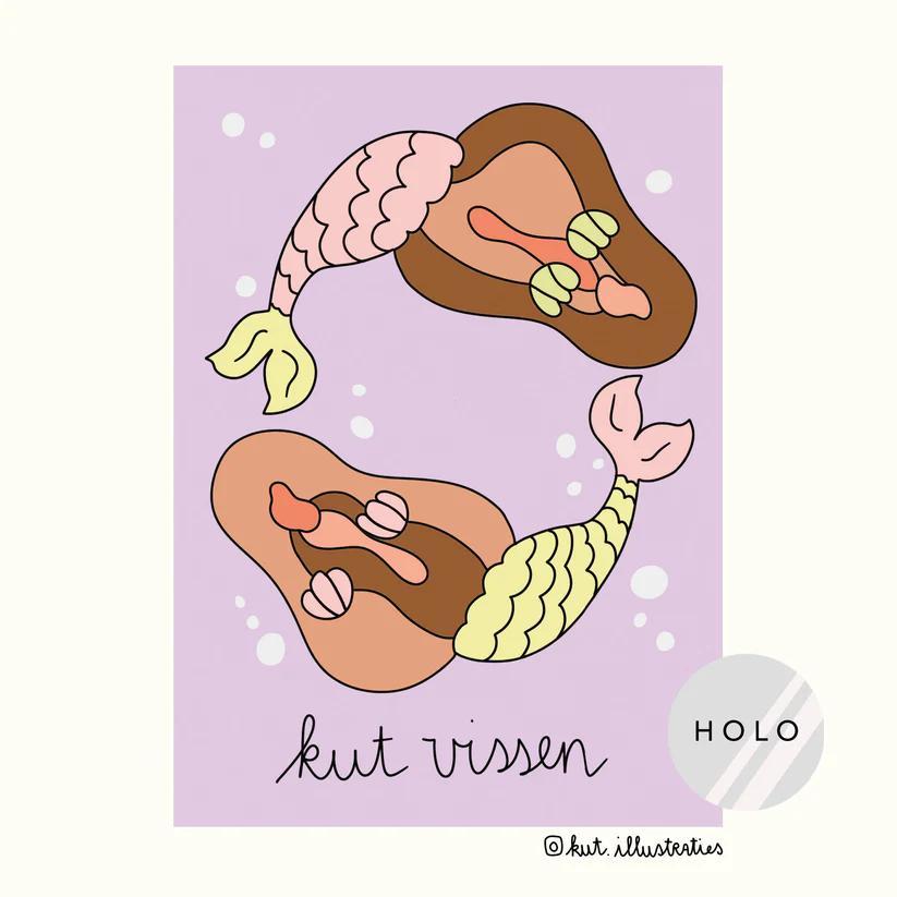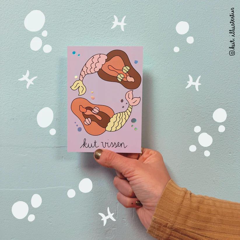 Verras de Vissen in je leven met de KUT. Kaarten – Kut Vissen! Deze grappige en speelse kaart is een knipoog naar het sterrenbeeld Vissen en zorgt gegarandeerd voor een lach. Dankzij de holografische afwerking springt de kaart direct in het oog en is hij perfect om te geven bij elke gelegenheid. Gedrukt op stevig sulfaatkarton en gemaakt van FSC-gecertificeerd papier, is deze kaart niet alleen stijlvol, maar ook milieuvriendelijk. Met het compacte A6-formaat kun je er gemakkelijk een persoonlijke boodschap aan toevoegen. Een unieke keuze voor verjaardagen, speciale momenten of gewoon een leuke verrassing.