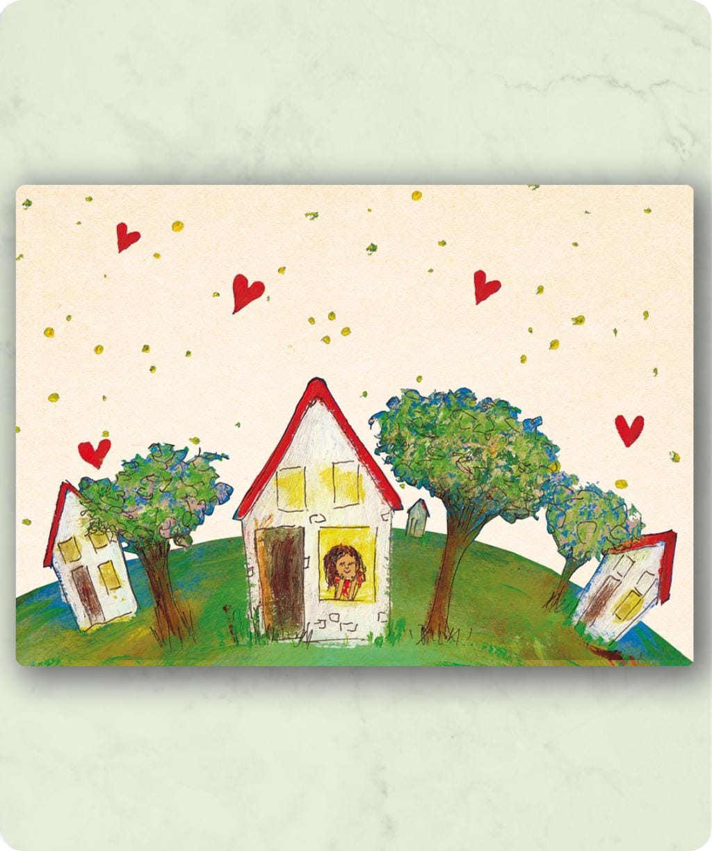 Deze schattige Zintenz postkaart met het ontwerp van een huisje, boom en hartje is een perfecte manier om liefde en verbondenheid te delen. Het ontwerp straalt rust en romantiek uit, ideaal voor een speciaal moment of om iemand te laten weten dat je aan hen denkt. De kaart is gedrukt op 100% gerecycled papier met plantaardige bio-inkt, wat hem niet alleen mooi maakt, maar ook een milieuvriendelijke keuze. Stuur je liefde op een duurzame manier!