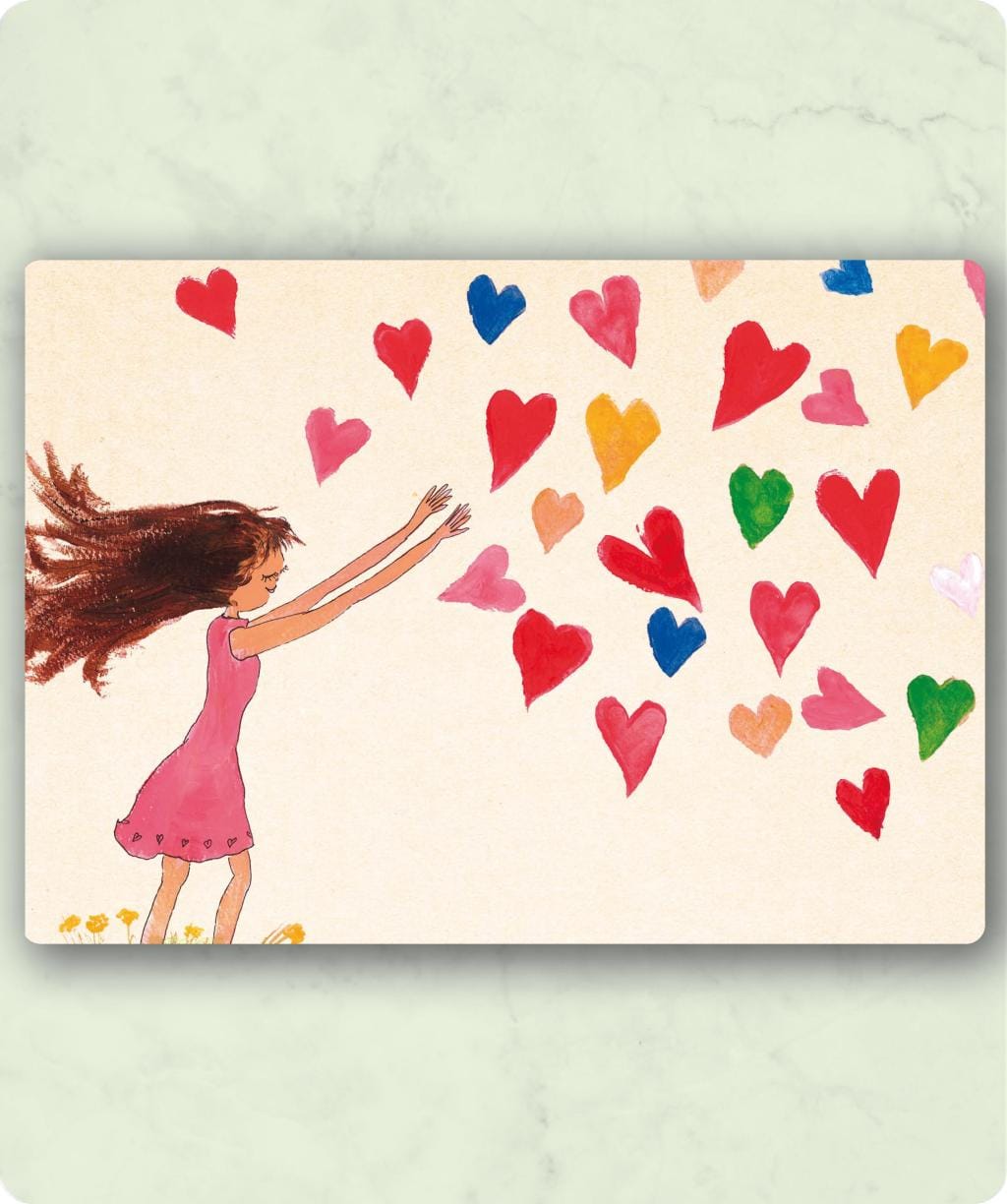 Deze Zintenz postkaart met een speels ontwerp van hartjes die vrolijk door de lucht strooien, is perfect om een liefdevolle boodschap te sturen. Het ontwerp brengt een gevoel van warmte, liefde en vrolijkheid over. Gedrukt op 100% gerecycled papier met plantaardige bio-inkt, is deze kaart zowel een stijlvolle als duurzame keuze voor het versturen van liefdevolle gebaren. Een prachtige manier om je gevoelens op een milieuvriendelijke manier te delen!