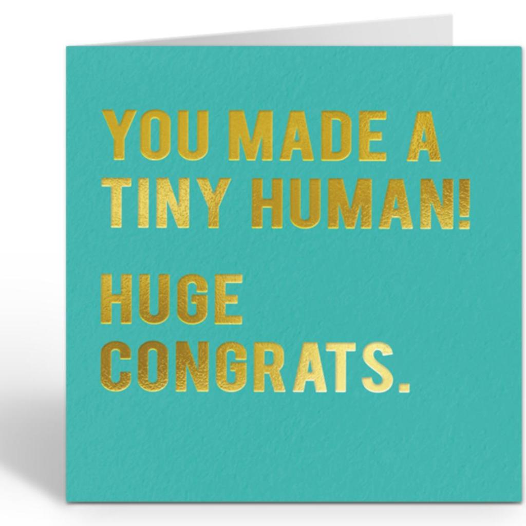 - Tekst op voorzijde: You made a tiny human! Huge congrats.