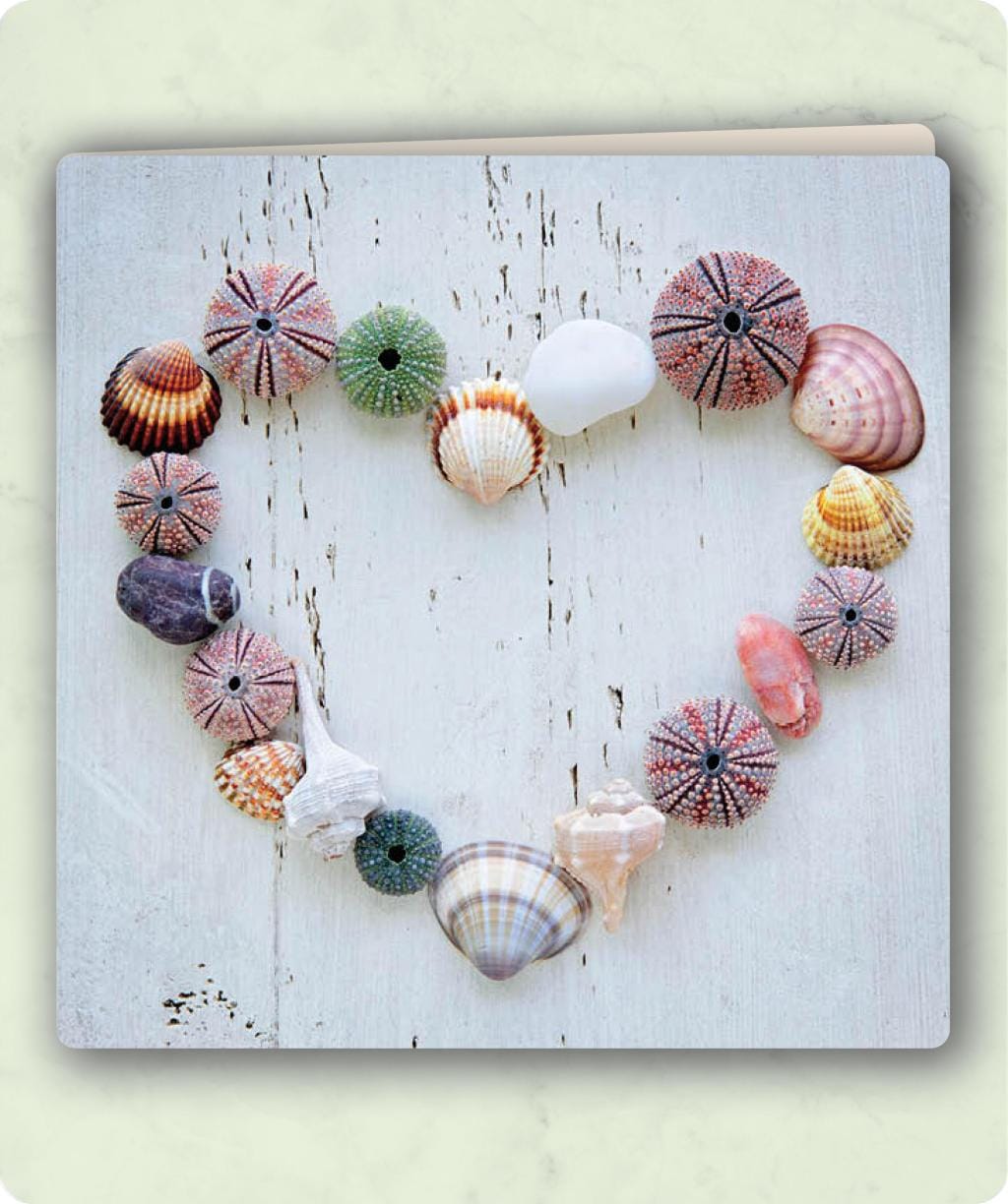 Deze betoverende Zintenz dubbele kaart met een hartvormige compositie van schelpen straalt warmte, liefde en verbondenheid uit. Perfect voor een speciale boodschap aan een dierbare, een lief gebaar of als stijlvolle decoratie. De kaart is milieuvriendelijk geproduceerd, gedrukt op 100% gerecycled papier met plantaardige bio-inkt. Inclusief envelop, zodat je hem direct kunt versturen. Een duurzame en betekenisvolle keuze!