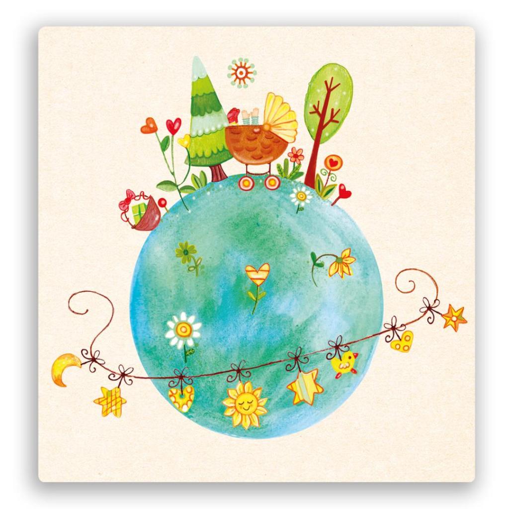Vierkante Postkaart Wereld met Kinderwagen – ZintenZ duurzame kaart (13,5 x 13,5 cm)