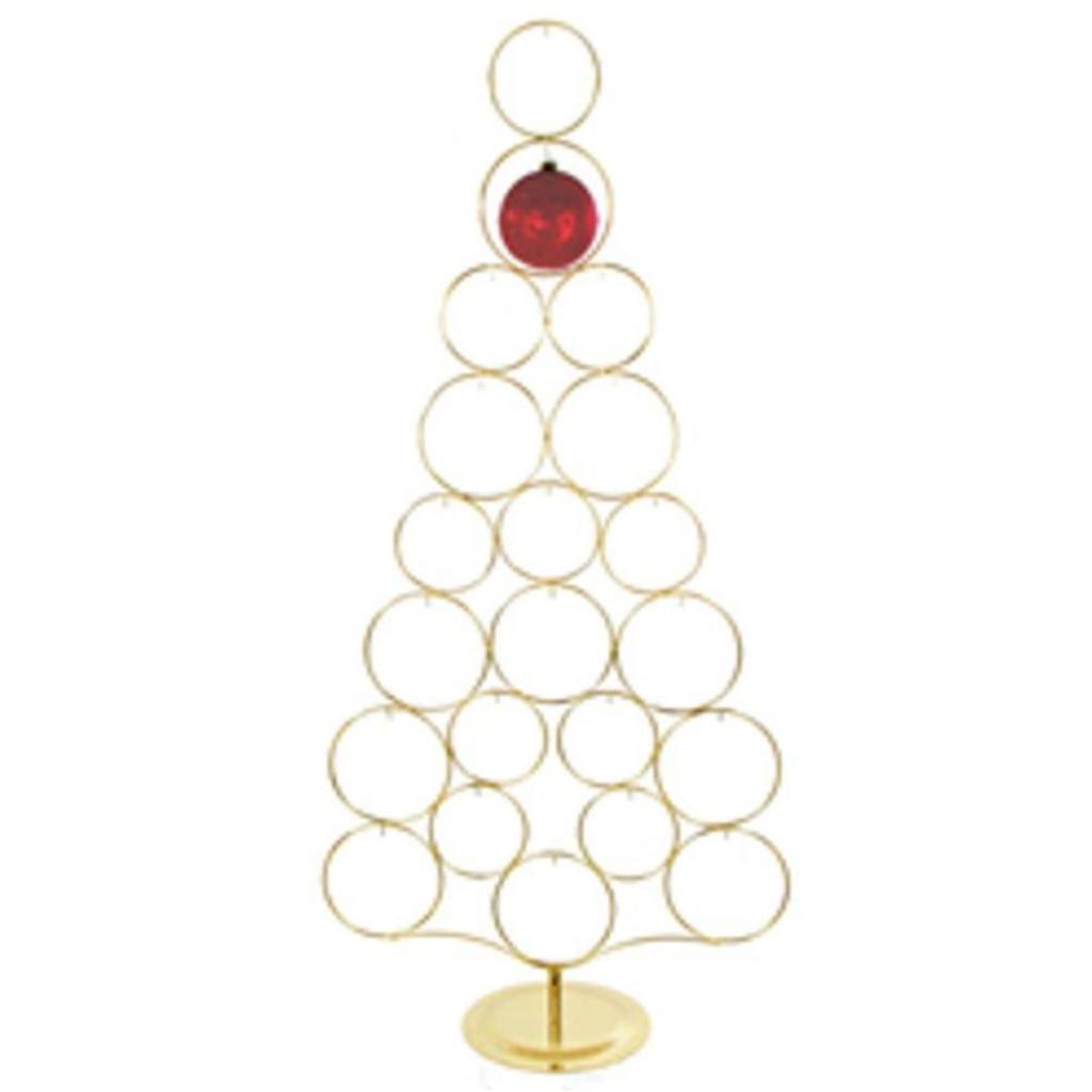 Deze ronde gouden kerstboom van Kurt S. Adler is een echte blikvanger voor de feestdagen. Het ontwerp bestaat uit een speelse opbouw van metalen ringen die samen een kerstboomvorm maken. Perfect om je mooiste kerstballen in te hangen, maar ook zonder ornamenten al een stijlvolle decoratie.