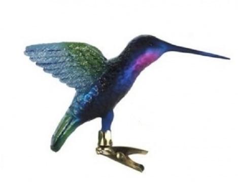 - Kerstbal Glazen Kolibrie op Clip Blauw