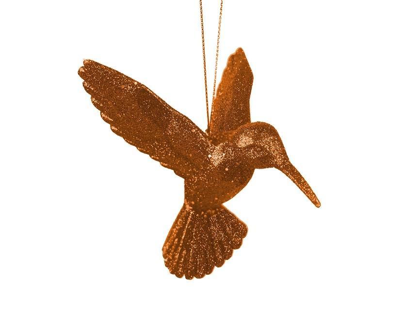 Kerstbal Acryl Kolibrie Amber met Glitters