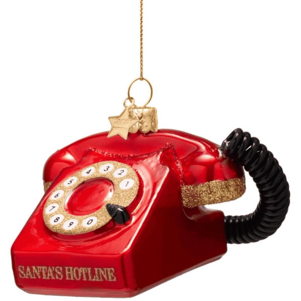 Kerstbal Rode Vintage Telefoon – Santa’s Hotline van Vondels (7 cm)