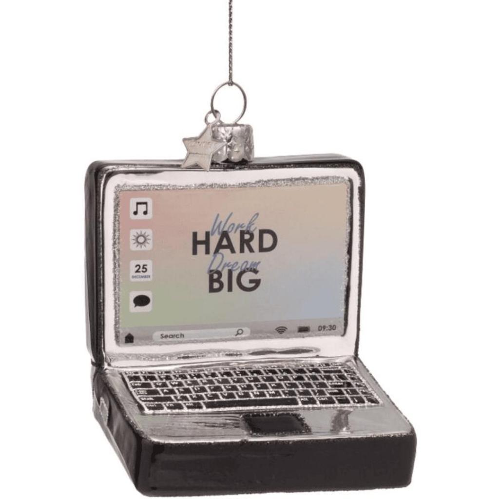 Voor de harde werkers, digital nomads of techliefhebbers: deze glazen laptop kerstbal van Vondels is een subtiele ode aan het moderne leven. Het scherm toont de inspirerende boodschap “Work Hard, Dream Big” en het toetsenbord is tot in detail weergegeven. Perfect voor in een boom vol symboliek – of gewoon omdat je je laptop niet los kunt laten, zelfs met kerst.