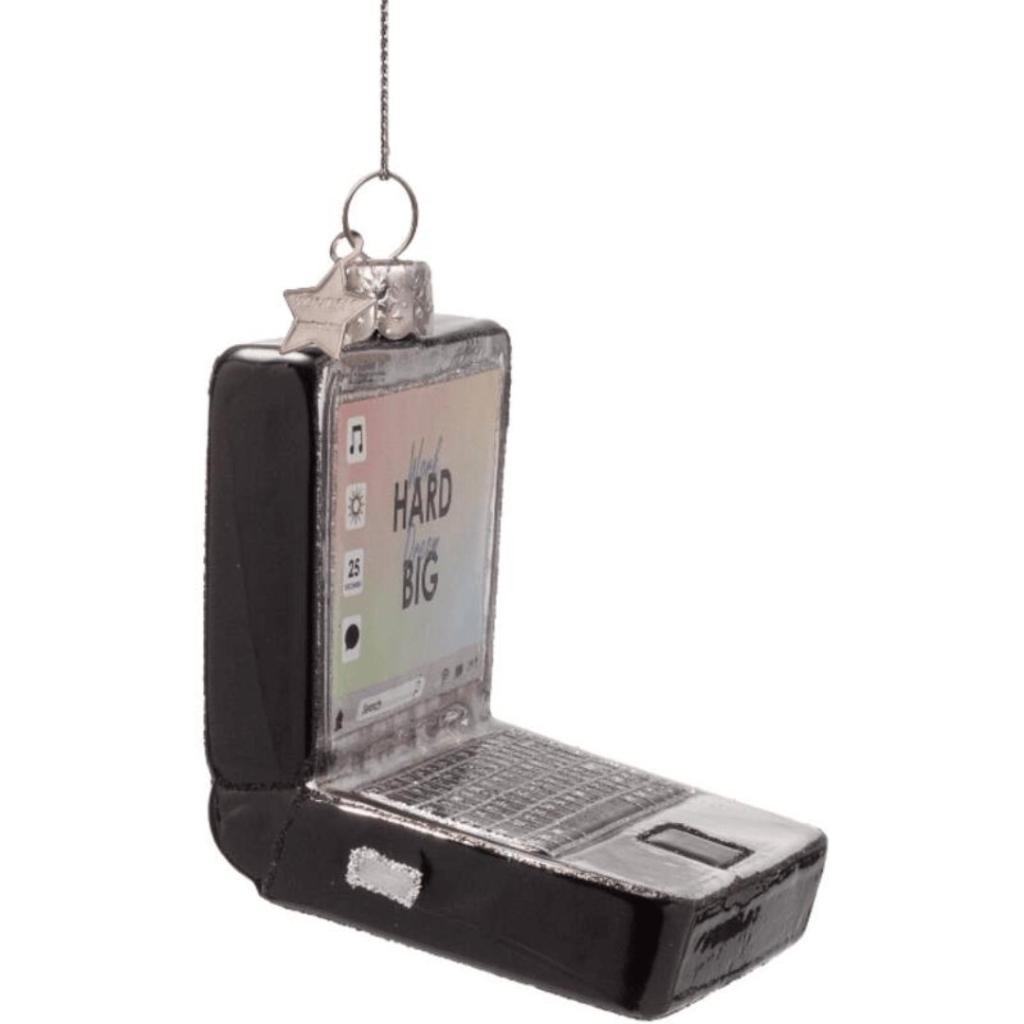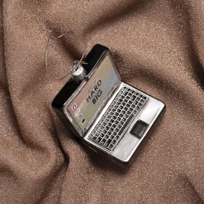 Kerstbal Zwarte Laptop – Glazen ornament van Vondels (10 cm)