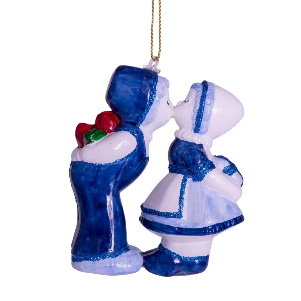 • Kerstbal Delfts Blauw kussend paar