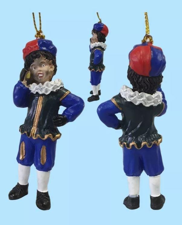 Deze Piet is helemaal mee met de tijd! Met zijn mobiele telefoon in de hand is hij altijd bereikbaar, zelfs tijdens het cadeautjes bezorgen. Deze unieke kerstbal van polystone is een echte eyecatcher voor in de kerstboom. Een knipoog naar de moderne tijd, verpakt in een traditioneel Sinterklaas-jasje.