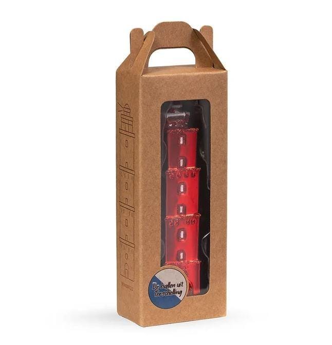 Ontdek de magie van Terschelling met deze bijzondere kerstbal. De rode Brandaris, de oudste nog werkende vuurtoren van Nederland, is met de grootste zorg op glas geblazen.