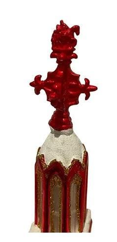 Schitterende kerst piek van de Domtoren in Utrecht, gehuld in feestelijk rood, ter ere van Sint Maarten. Met zorg vervaardigd voor een magische touch voor in jouw kerstdecoratie. Bestel deze unieke piek nu en breng de betovering van Utrecht naar jouw kerstboom! Ook te koop in onze winkel in Rotterdam Noord.