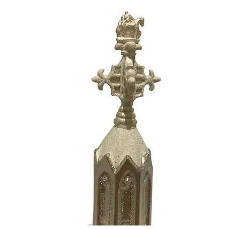 Breng een vleugje elegantie naar jouw kerstboom met deze prachtige, zilveren Domtoren kerstpiek. Deze handgemaakte piek is een uniek kunstwerk, vervaardigd uit hoogwaardig glas en met de hand beschilderd in een glanzend zilveren kleur. Het ontwerp is geïnspireerd op het gerestaureerde torenkruis en de rijke geschiedenis van Utrecht. Een tijdloos symbool van Utrechtse trots, deze piek past perfect in elk interieur. Creëer een warme winterse sfeer in huis met deze betoverende Domtoren piek.