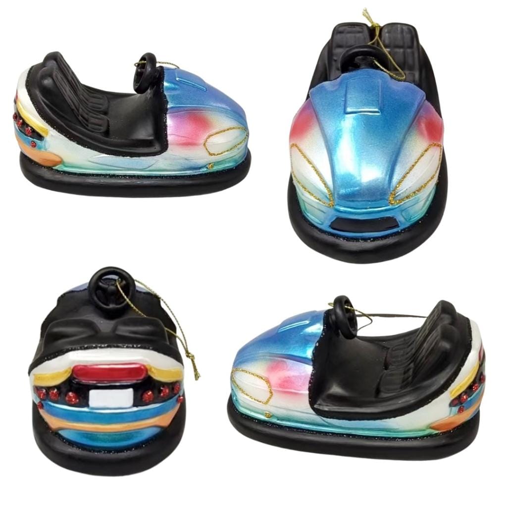 Kerstbal Botsauto Blauw – Glazen kerstornament in retro kermisstijl (12 cm)