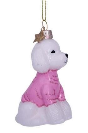 Kerstbal Poedel Wit met Roze T Shirt