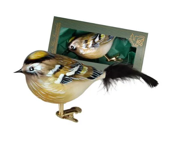 Een prachtig Goudhaantje op Clip. Deze glazen kerstbal kun je gemakkelijk aan de dennetak van je kerstboom bevestigen. Dit ornament is geweldig om cadeau te geven aan een vogelliefhebber. We hebben nog veel meer kerstballen en ornamenten van vogels, kijk rond op onze website of kom langs in onze winkel.