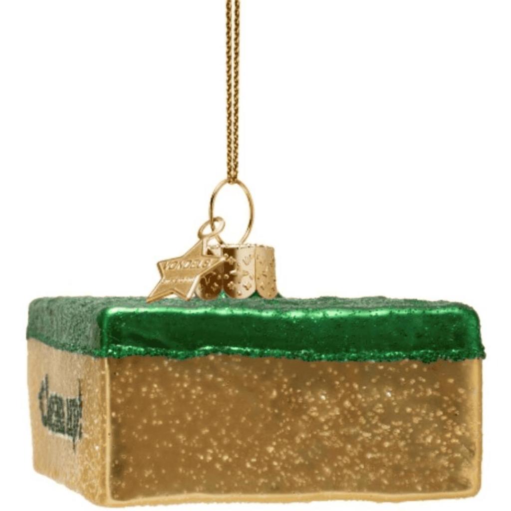 Voor iedereen met een vleugje zelfspot en een oog voor detail: deze kerstbal in de vorm van een schuurspons is een echte blikvanger in de boom. Het glazen ornament is rijkelijk voorzien van glitters en draagt aan de zijkant de tekst "Clean up!" – een knipoog naar het huishouden tijdens de feestdagen. Deze originele kerstbal is handgemaakt van glas, komt van het Amsterdamse merk Vondels en wordt geleverd in een papieren verpakking.