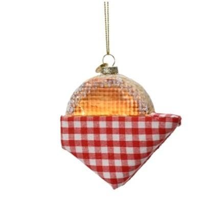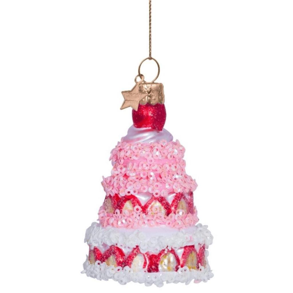 Zo zoet als kerst zelf! Deze aardbeientaart kerstbal van Vondels is een feestelijk én vrolijk ornament voor in de boom. De taart bestaat uit drie lagen, rijk versierd met witte glazuurdetails, roze pailletten en natuurlijk een glanzende aardbei bovenop. Gemaakt van mondgeblazen glas en met de hand beschilderd – een traktatie voor het oog.