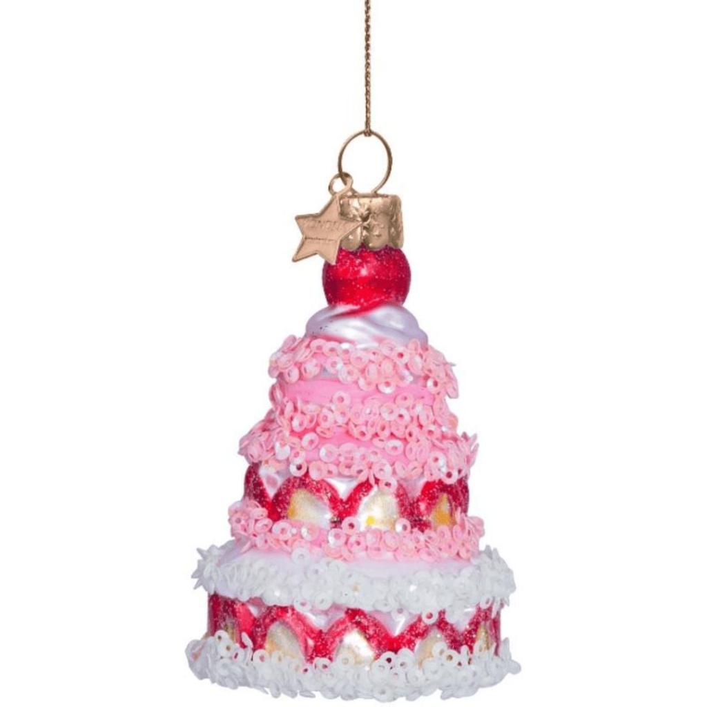 Kerstbal Aardbeientaart – Glazen ornament van Vondels (9 cm)