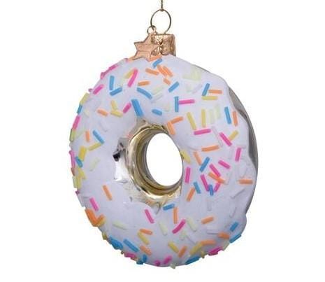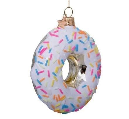 Deze Donut met Witte Glazuur ziet eruit om op te eten, maar pas op! Dit heerlijke ornament is gemaakt van glas. Het voordeel: deze zal niet over de datum raken. Zo kun je ieder jaar opnieuw genieten van deze vrolijke kerstbal van Vondels in je kerstboom. Ook leuk om op andere feestelijke momenten op te hangen als decoratie.