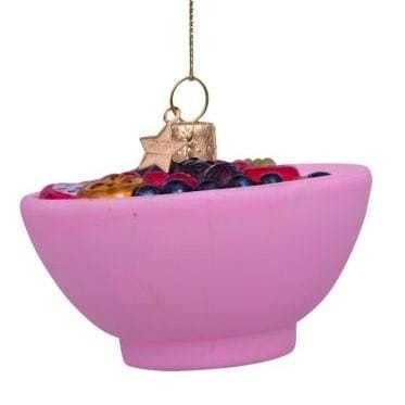 Deze prachtige Bowl is gevuld met heerlijk Fruit. Een lekkere, gezonde maaltijd. Daar wordt toch iedereen blij van? Deze glazen Mat-roze Kerstbal van Vondels staat super mooi tussen de groene dennentakken van je kerstboom. Een leuk cadeau om te geven aan een foodie of aan iemand die dagelijks ontbijt met zo'n heerlijke Fruit Bowl.