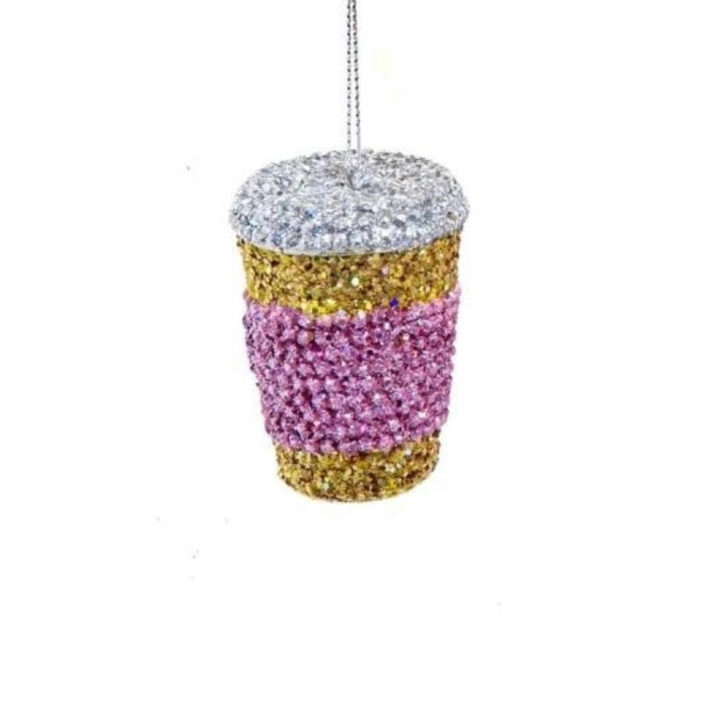Voor de koffieliefhebber: een glitterende koffiebeker kerstbal! Met sprankelende kleuren en vrolijke uitstraling.