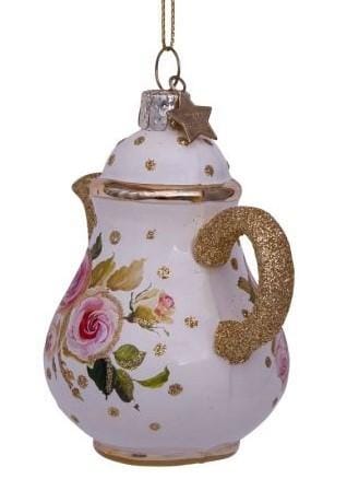 - Kerstbal Theepot Wit-Goud met Bloemen Print