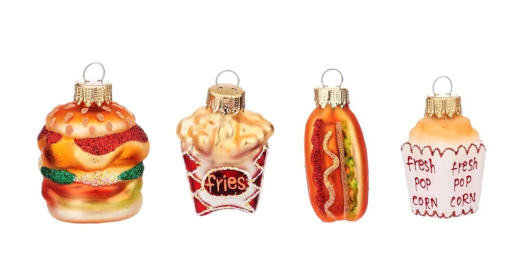• Kerstbal Glas Set van 4 Fast Food Kerstballen Mini