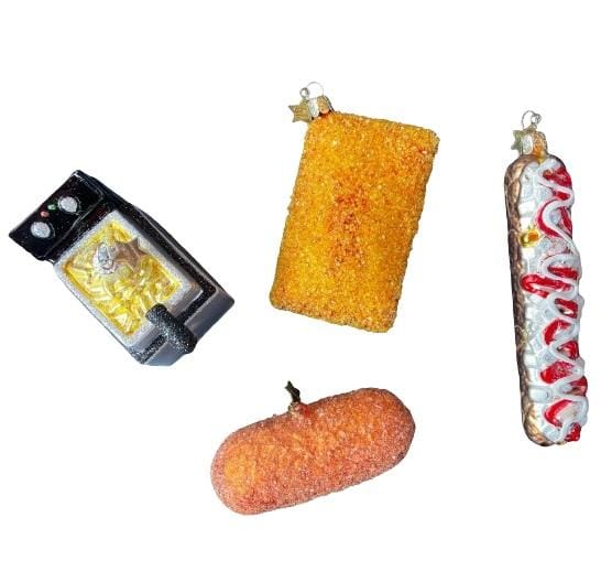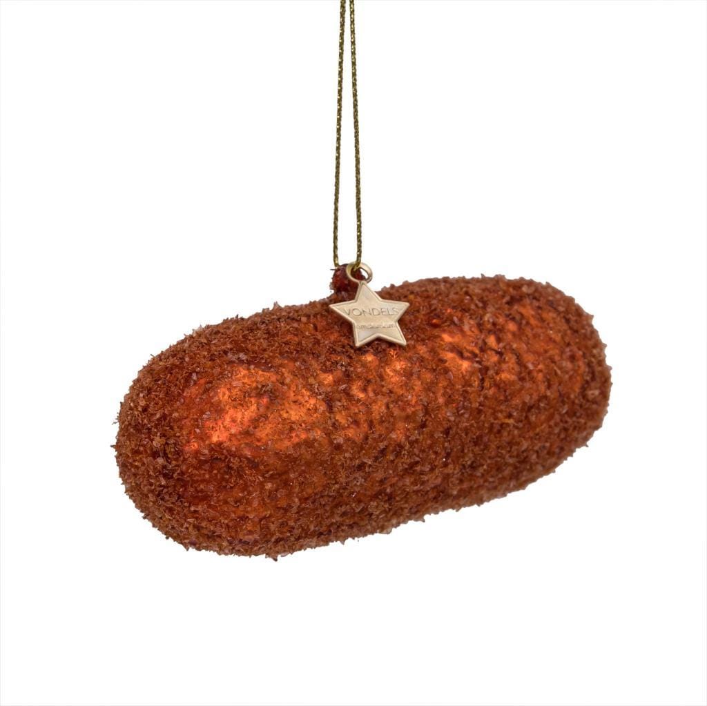 Unieke Ontwerpen: Onderscheid je kerstboom met deze handgemaakte kerstballen in de vorm van typisch Nederlandse snacks.