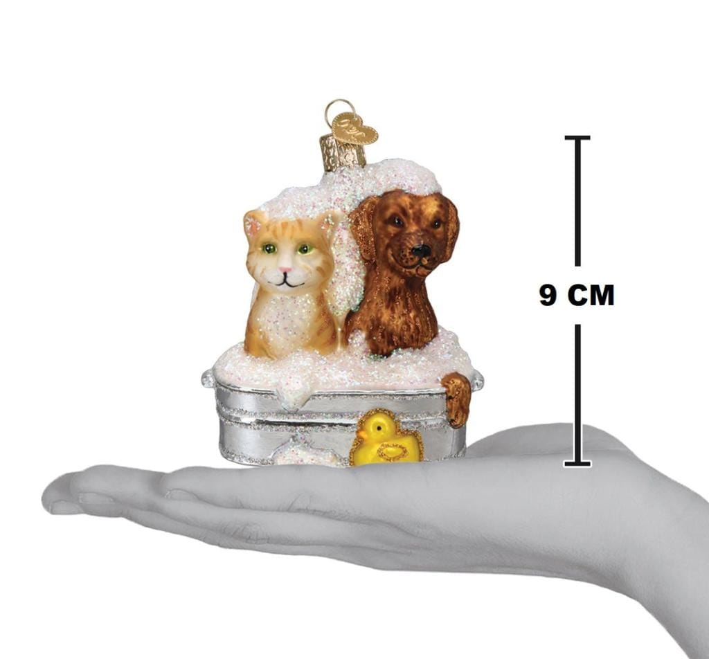 Een geweldig ornament voor de dierenliefhebber: Hond en Kat in Bad kerstbal. Leuk voor in de kerstboom of om als decoratie op te hangen in huis. Pas wel op wanneer je huisdieren hebt: het ornament is gemaakt van glas.