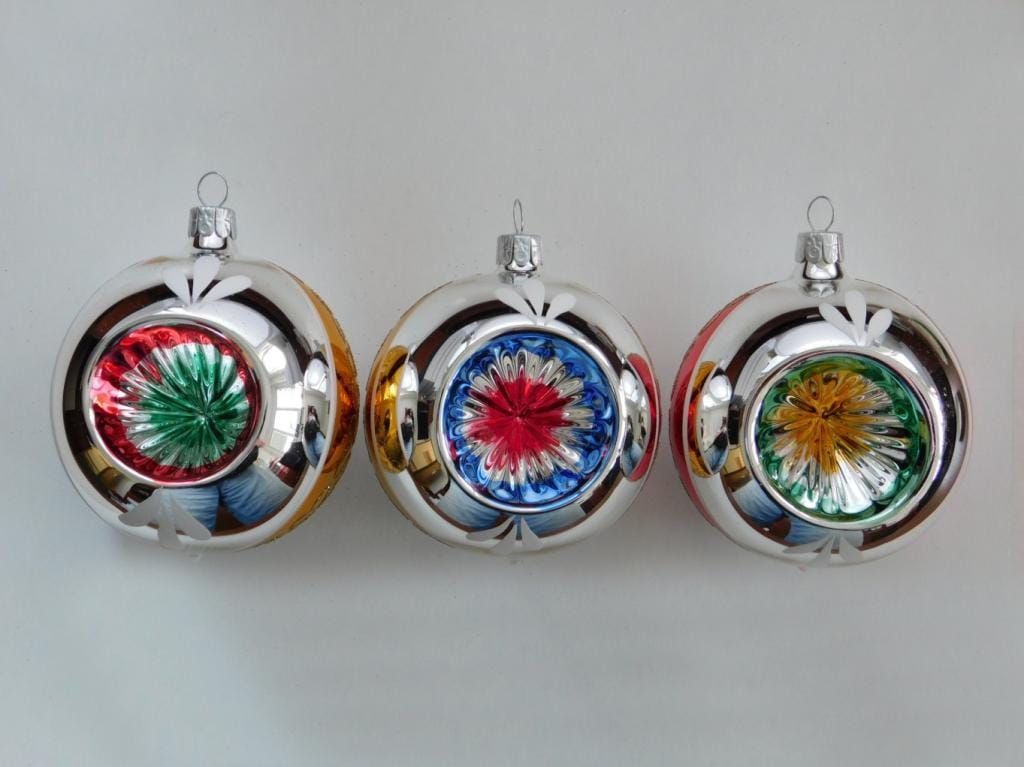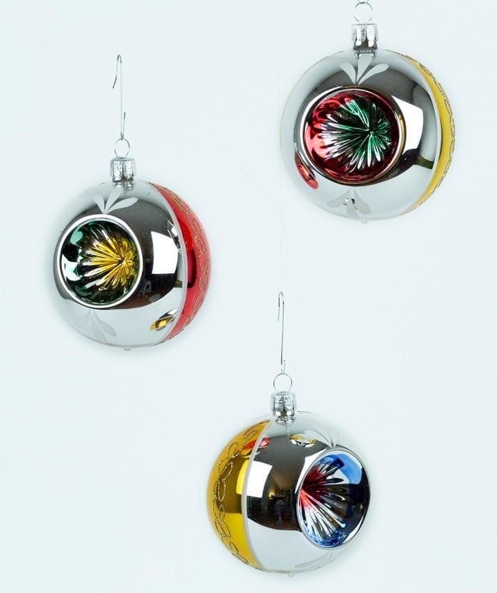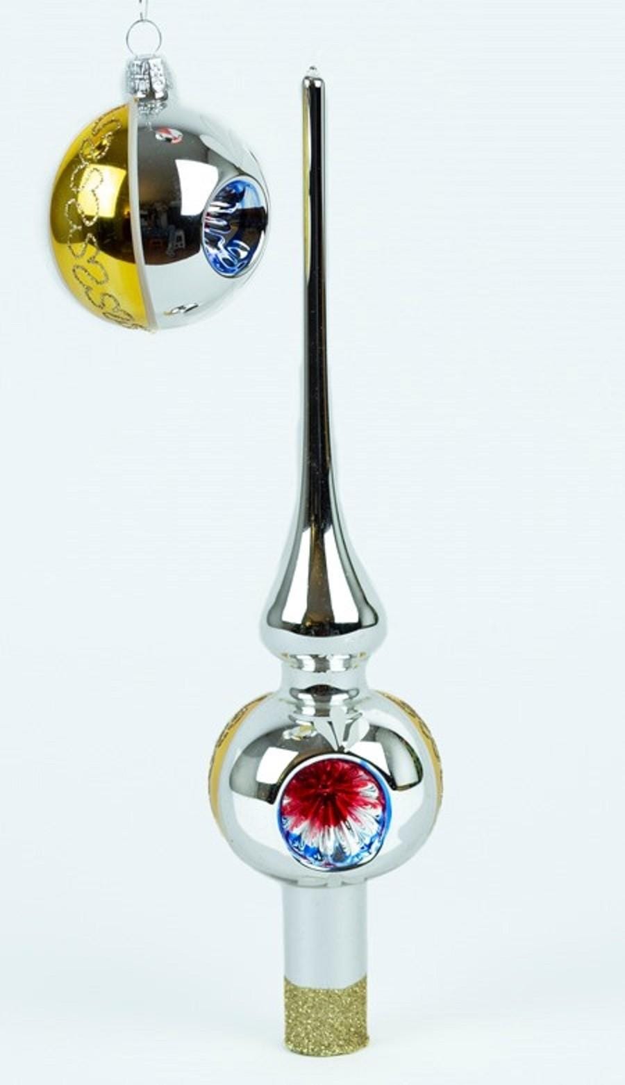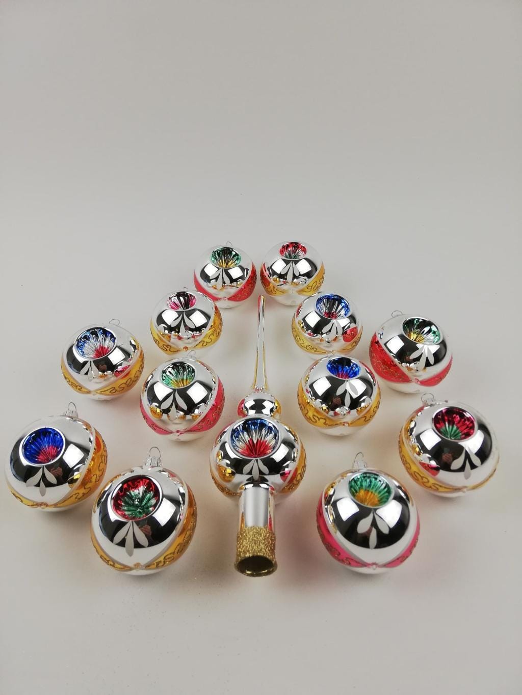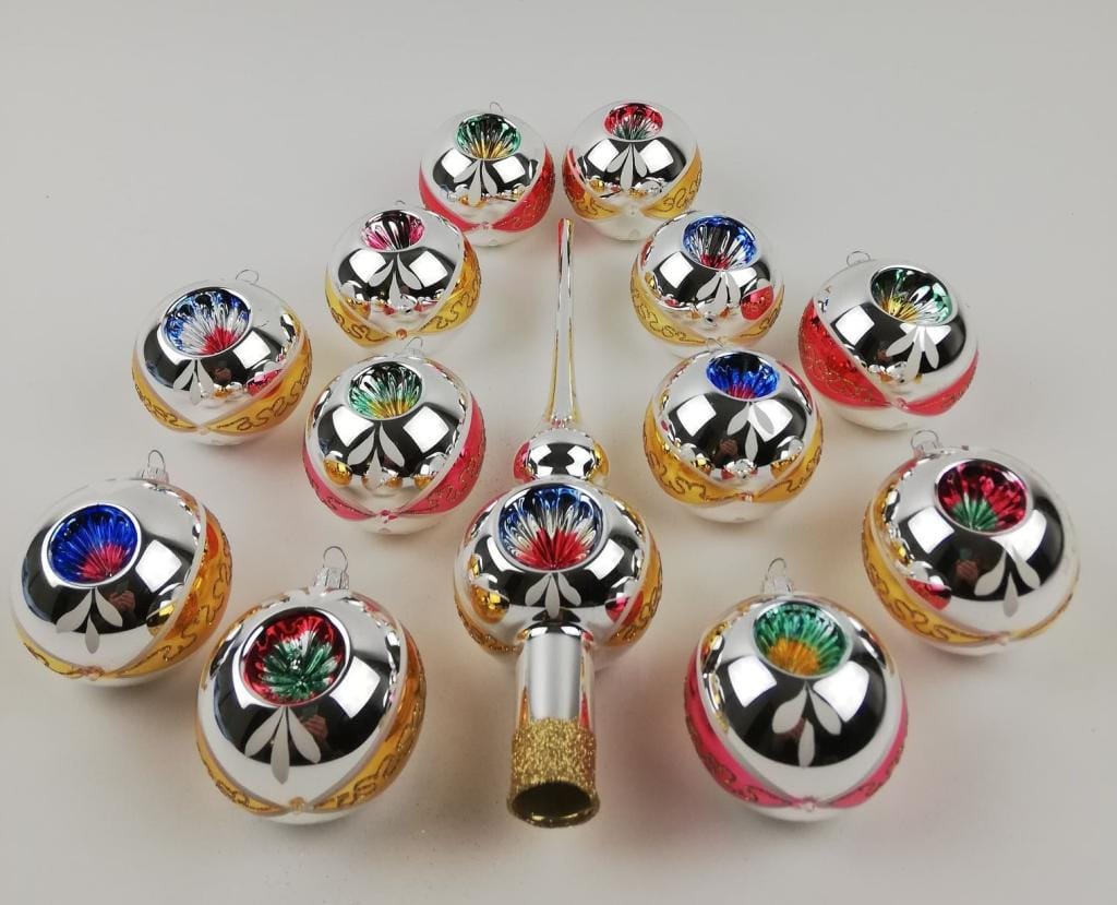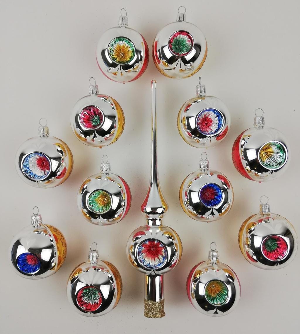 Set van 12 Retro Dubbel Reflector Kerstballen met Piek Ornex 06