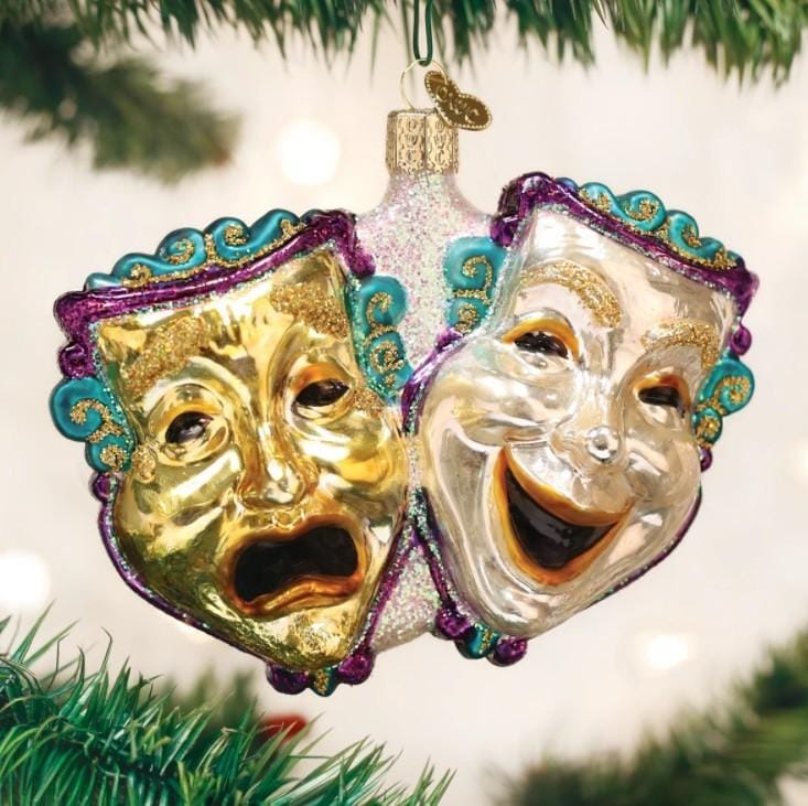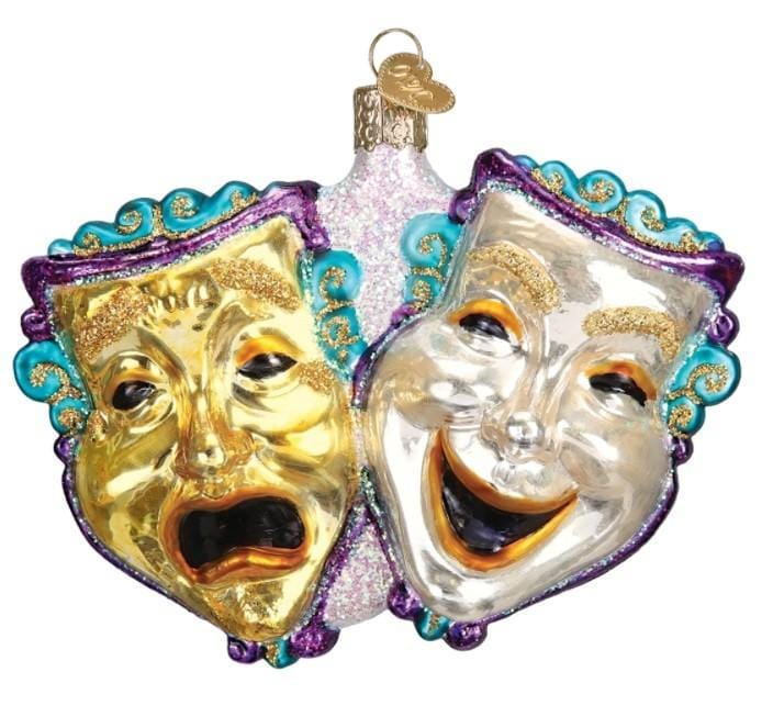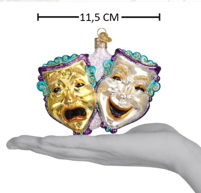 De Komedie en Tragedie Maskers zijn afkomstig uit het Griekse theater. Acteurs droegen maskers met overdreven uitdrukkingen, zodat mensen die ver weg zaten de emoties van het personage konden zien. De maskers lieten acteurs ook toe om meerdere personages te spelen. Een leuk glazen ornament om cadeau te geven aan een acteur, actrice of iemand die gek is op het theater.