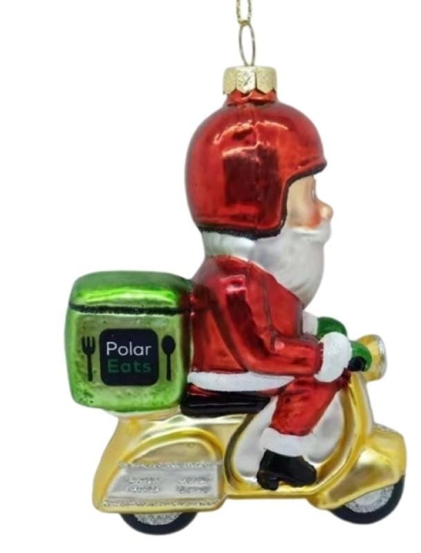 • Kerstbal Kerstman Bezorger op Scooter
