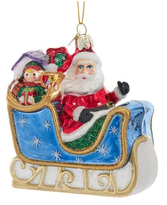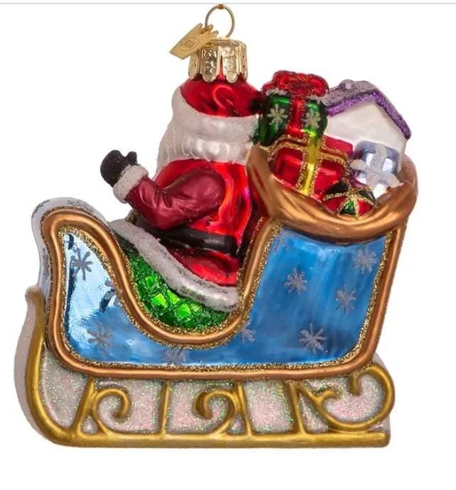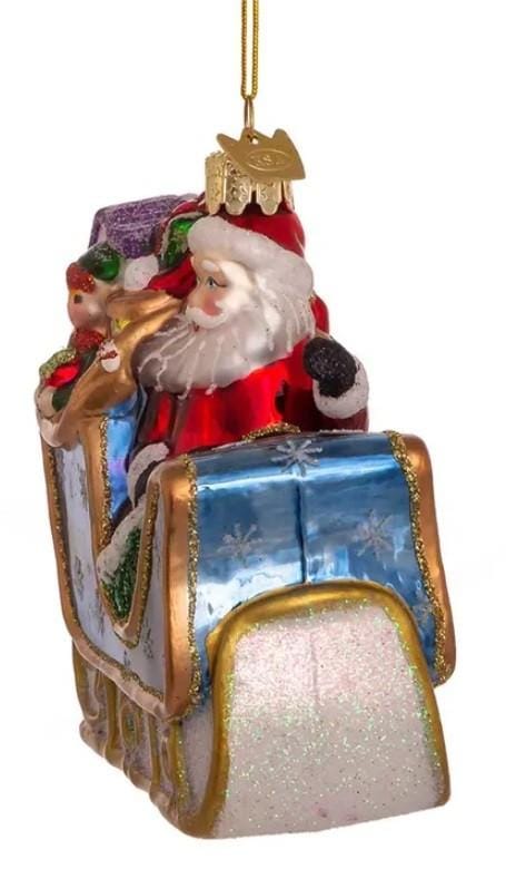 De Kerstman heeft zijn slee volgeladen met kadootjes. Geduldig wacht hij af in welke kerstboom hij zijn slee kan parkeren. Geef jij deze glazen Kerstbal van Kurt Adler een mooie plek? Met dit vrolijke ornament kom je meteen in de kerststemming.