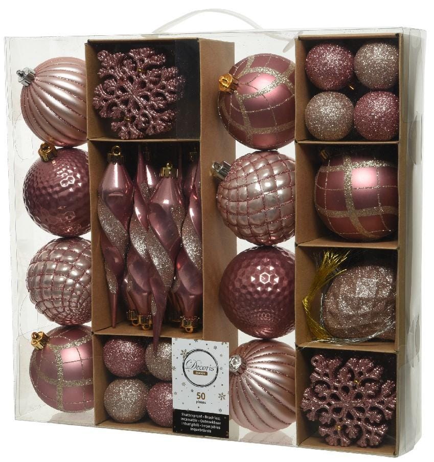 Set van 50 Onbreekbare Kerstballen Roze Mix