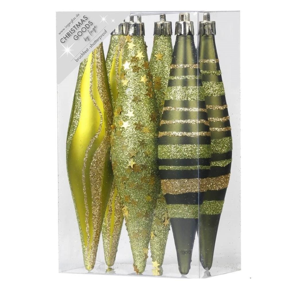 Set van 6 Onbreekbare Pegels Kerstballen Olijf Groene Mix