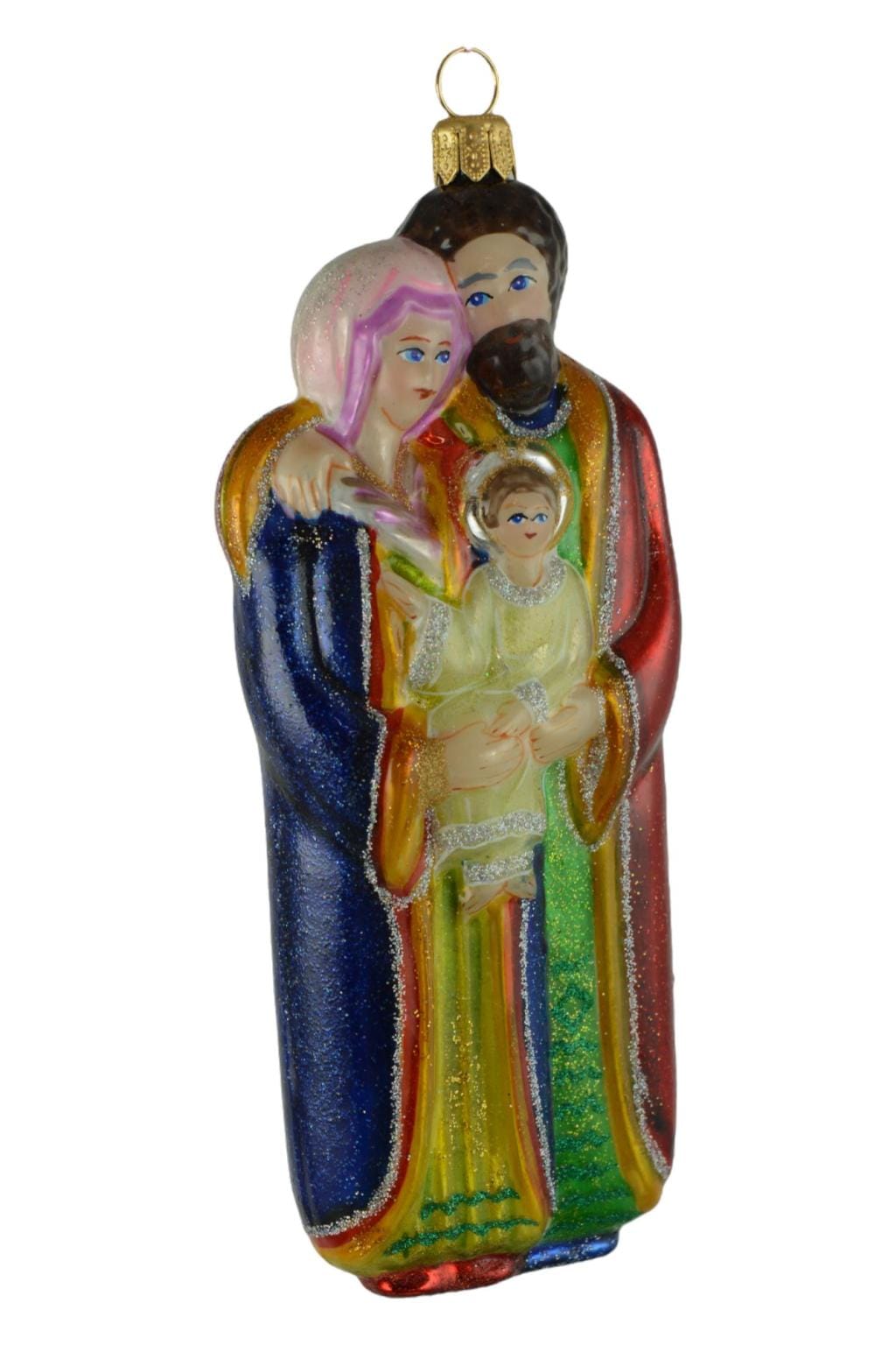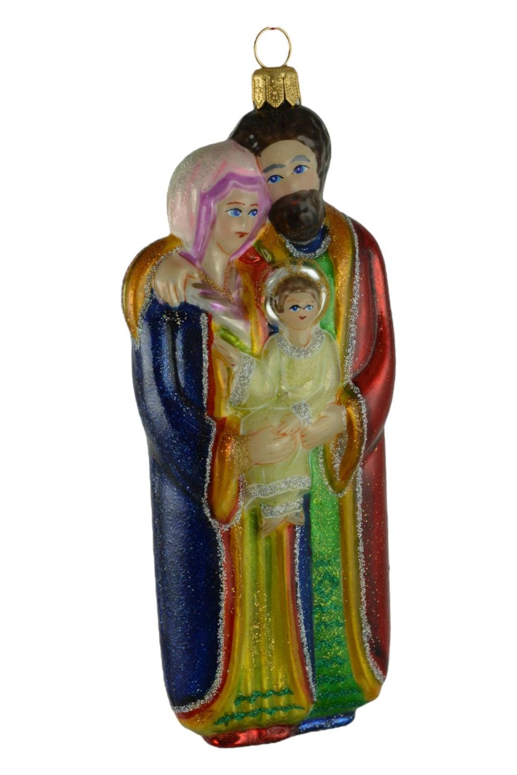 Krijgt deze prachtige Heilige Familie kerstbal een ereplaats in jouw kerstboom? De kerstballen van Mysteria zijn van de allerhoogste kwaliteit. De ornamenten worden van begin tot eind met de hand gemaakt én gaan door een strenge kwaliteitscontrole. Dat is duidelijk te zien aan deze kerstbal. De kleuren, de details, de afwerking…Wauw! Je ziet dat het met veel aandacht, zorg en liefde is gemaakt.