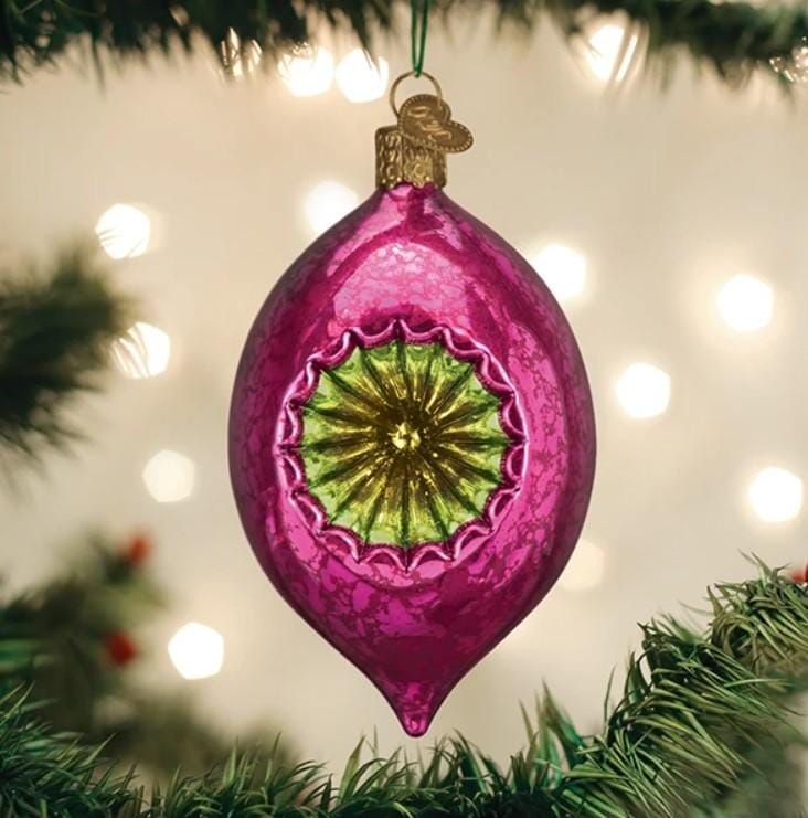 Deze Retro Fuchsia Reflector Kerstbal is een echte eyecatcher in de kerstboom. Het kleurcontrast tussen het lime groen en fuchsia zorgt voor een bijzonder mooi effect. Deze glazen Kerstbal van Old World Christmas is met de mond geblazen en handbeschilderd.