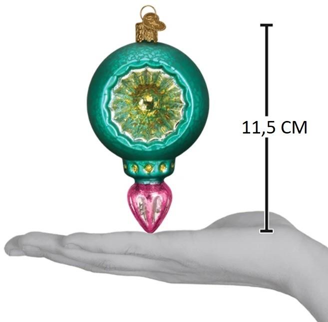 Deze retro kerstbal van Old World Christmas is een echte blikvanger in je boom. De diepe turquoise kleur wordt gecombineerd met een klassieke reflector in het midden, die het licht prachtig vangt en weerkaatst.