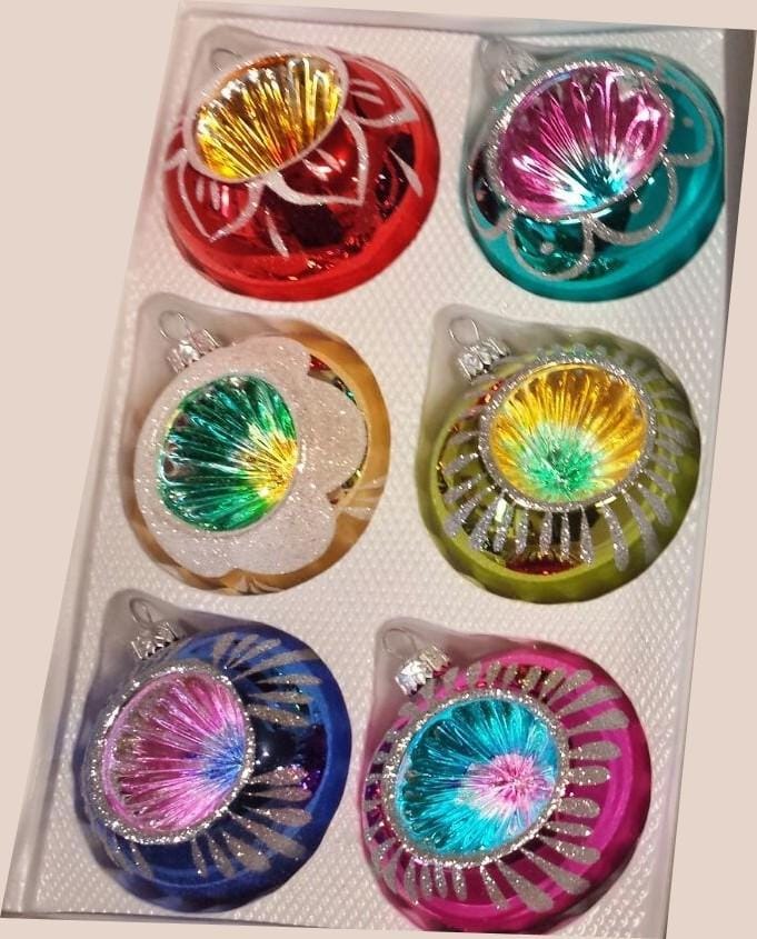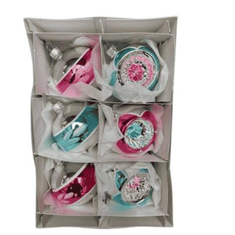 Set van 6 Retro Kerstballen met Deuk – Assorti